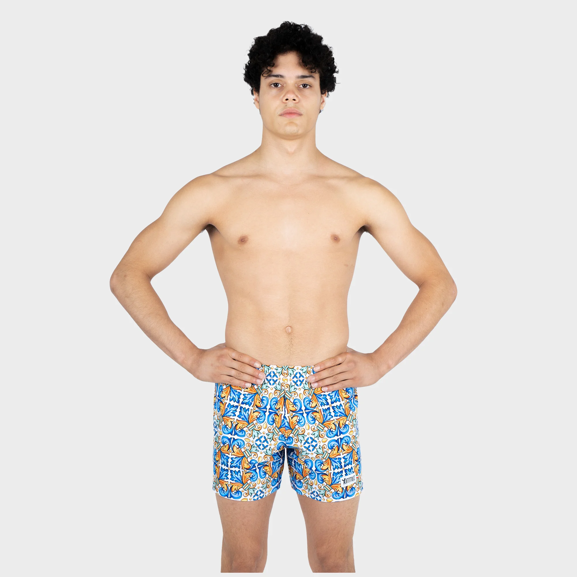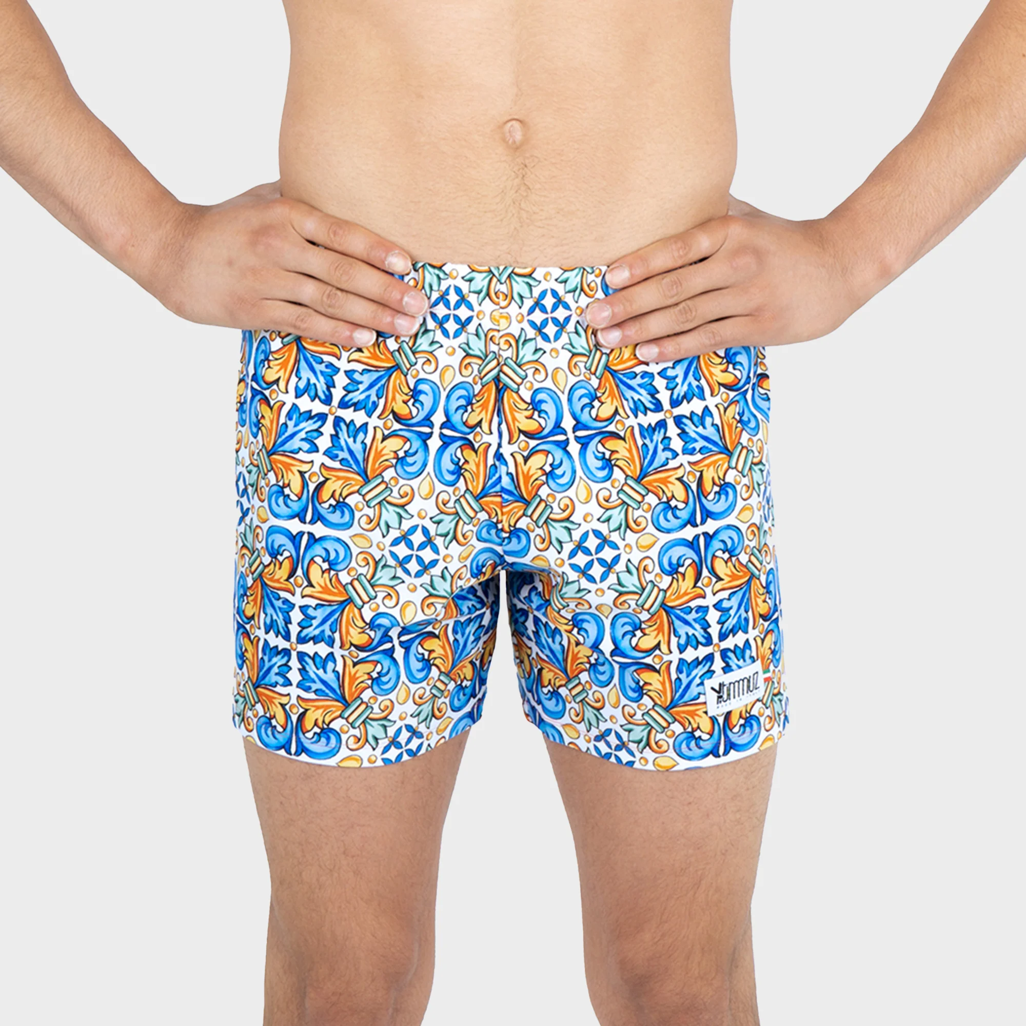 [vc_row][vc_column][vc_column_text]Pantaloncini da allenamento in lycra, con elastico antiscivolo, motivo Amalfi. Ogni capo viene prodotto in Italia con la massima cura e usando materiali di qualità.